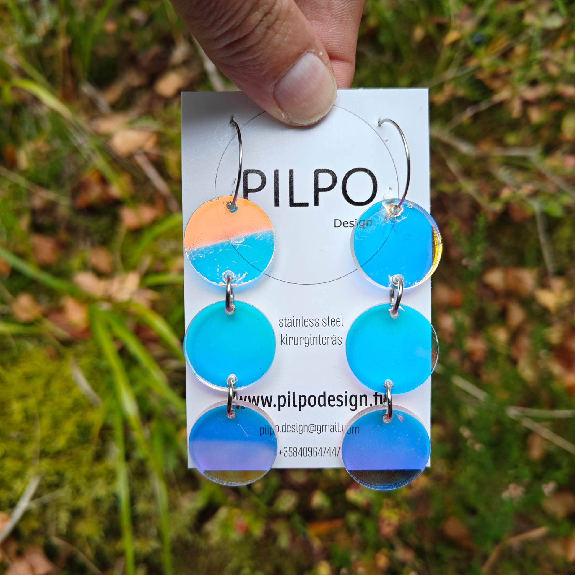 Pilpon korvikset valmistetaan käsityönä ja akryyliosat leikataan Suomessa. Akryyli on materiaalina mukavan kevyttä ja sopii hyvin materiaaliksi korviksiin. Osat laserleikataan suomessa ja akryyli tulee euroopasta. Myös kaikki muut korvisten muovi- ja metalliosat hankimme arvojemme mukaisesti suomalaisilta jälleenmyyjiltä.