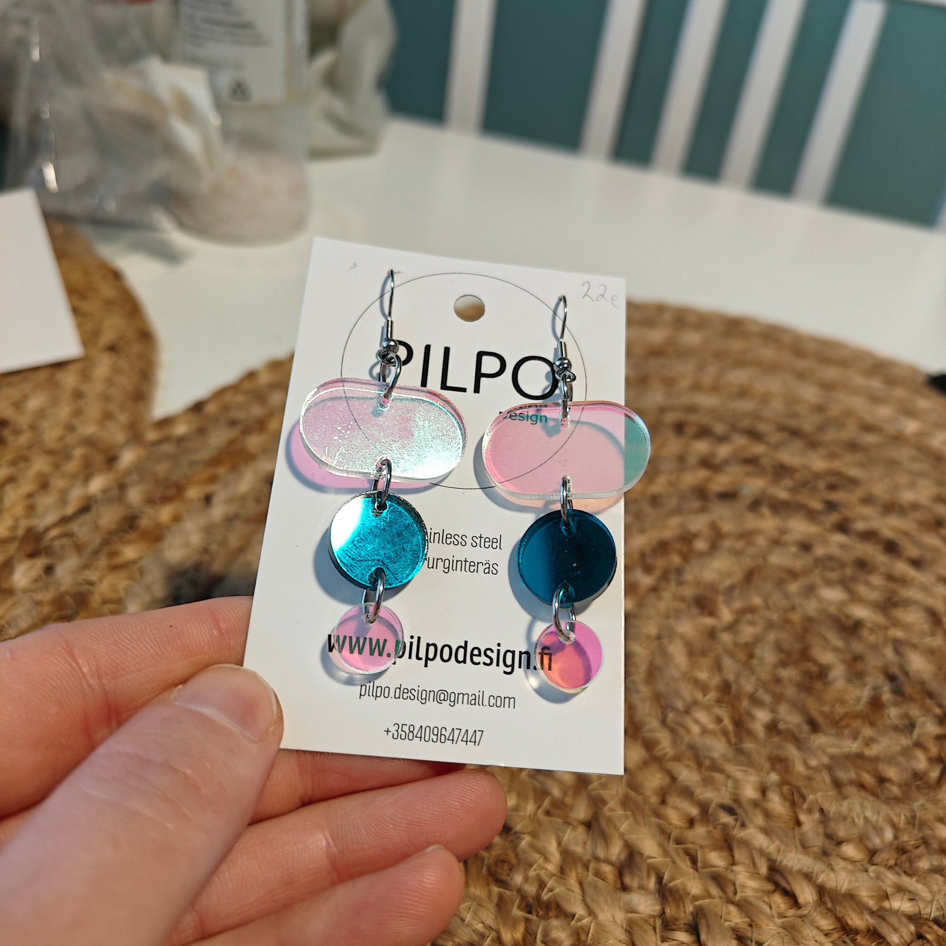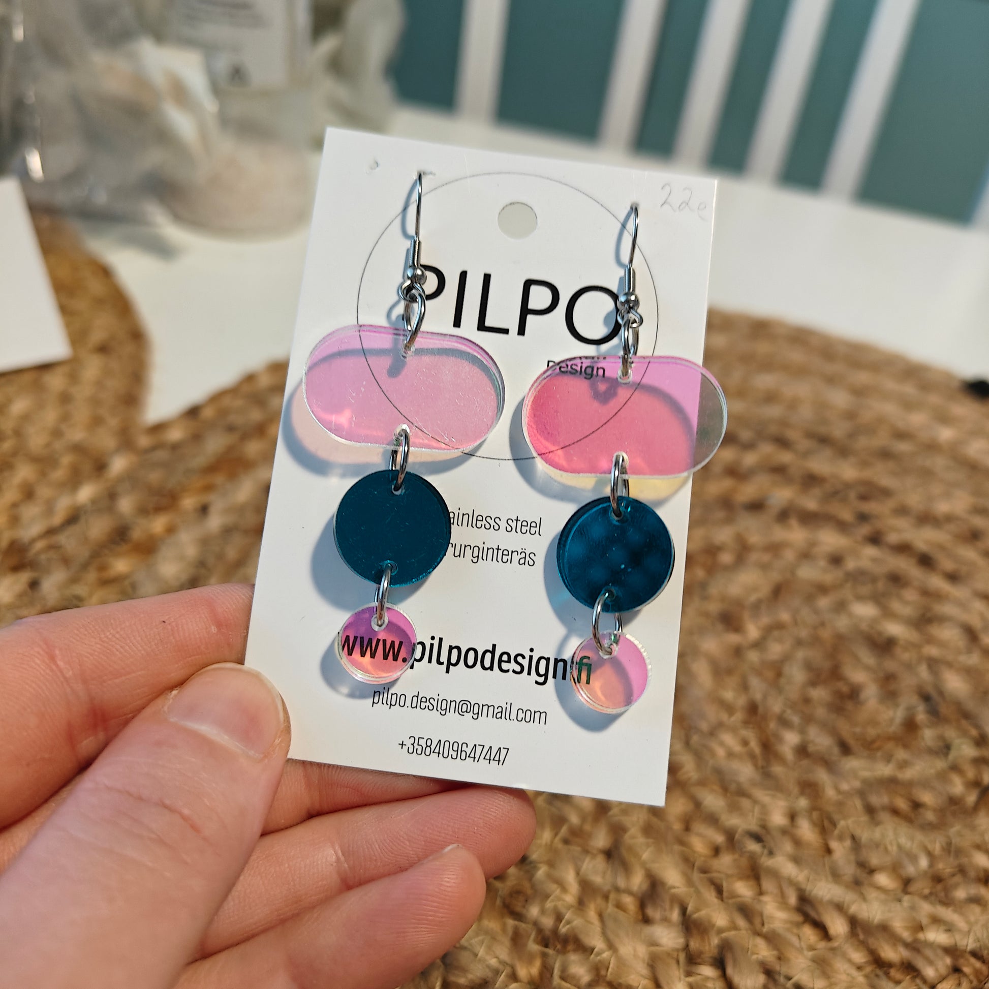 Pilpon korvikset valmistetaan käsityönä ja akryyliosat leikataan Suomessa. Akryyli on materiaalina mukavan kevyttä ja sopii hyvin materiaaliksi korviksiin. Osat laserleikataan suomessa. Myös kaikki muut korvisten muovi- ja metalliosat hankimme arvojemme mukaisesti suomalaisilta jälleenmyyjiltä.