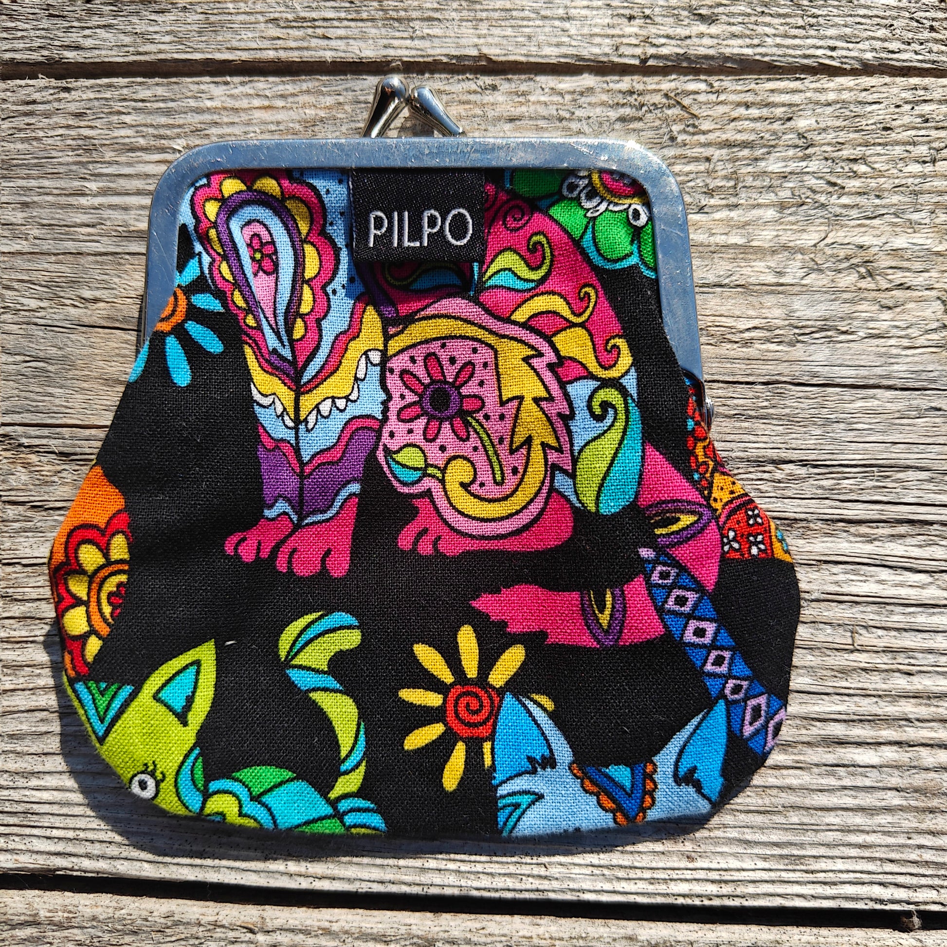 Tähän pieneen kukkaroon saat mahtumaan kolikkosi ja vaikkapa kuitteja. Pankkikortit eivät mahdu kukkaroon. Kukkaron koko n. 8cm x 8xm.