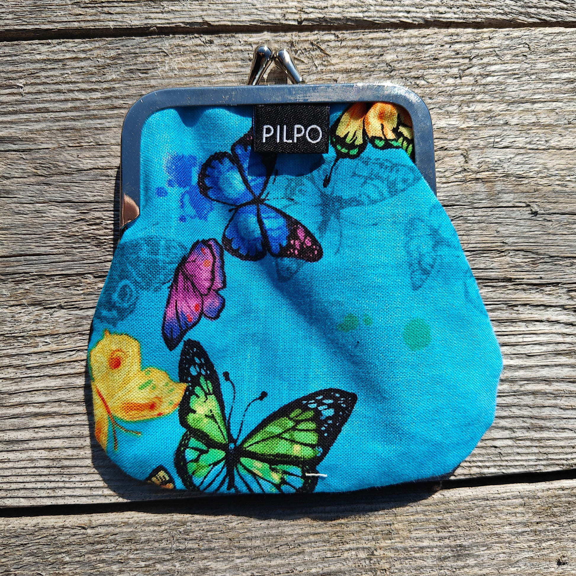 Tähän pieneen kukkaroon saat mahtumaan kolikkosi ja vaikkapa kuitteja. Pankkikortit eivät mahdu kukkaroon. Kukkaron koko n. 8cm x 8xm.