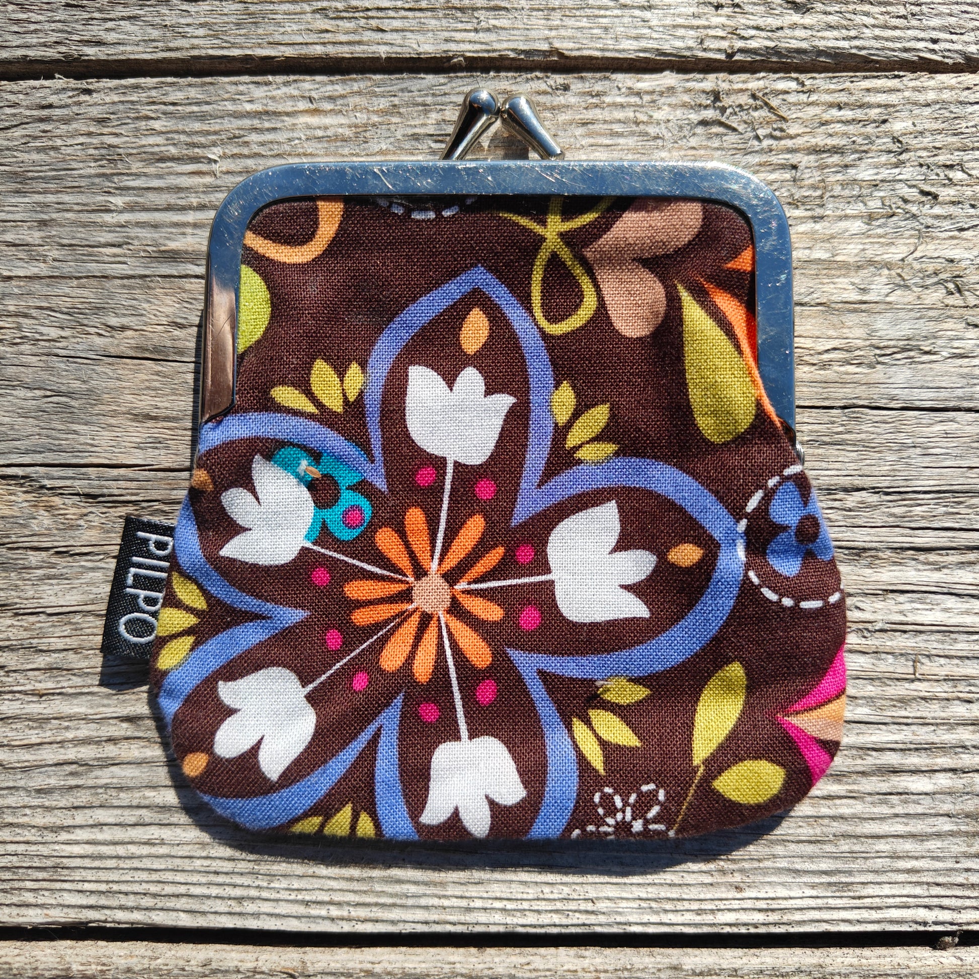 Tähän pieneen kukkaroon saat mahtumaan kolikkosi ja vaikkapa kuitteja. Pankkikortit eivät mahdu kukkaroon. Kukkaron koko n. 8cm x 8xm.