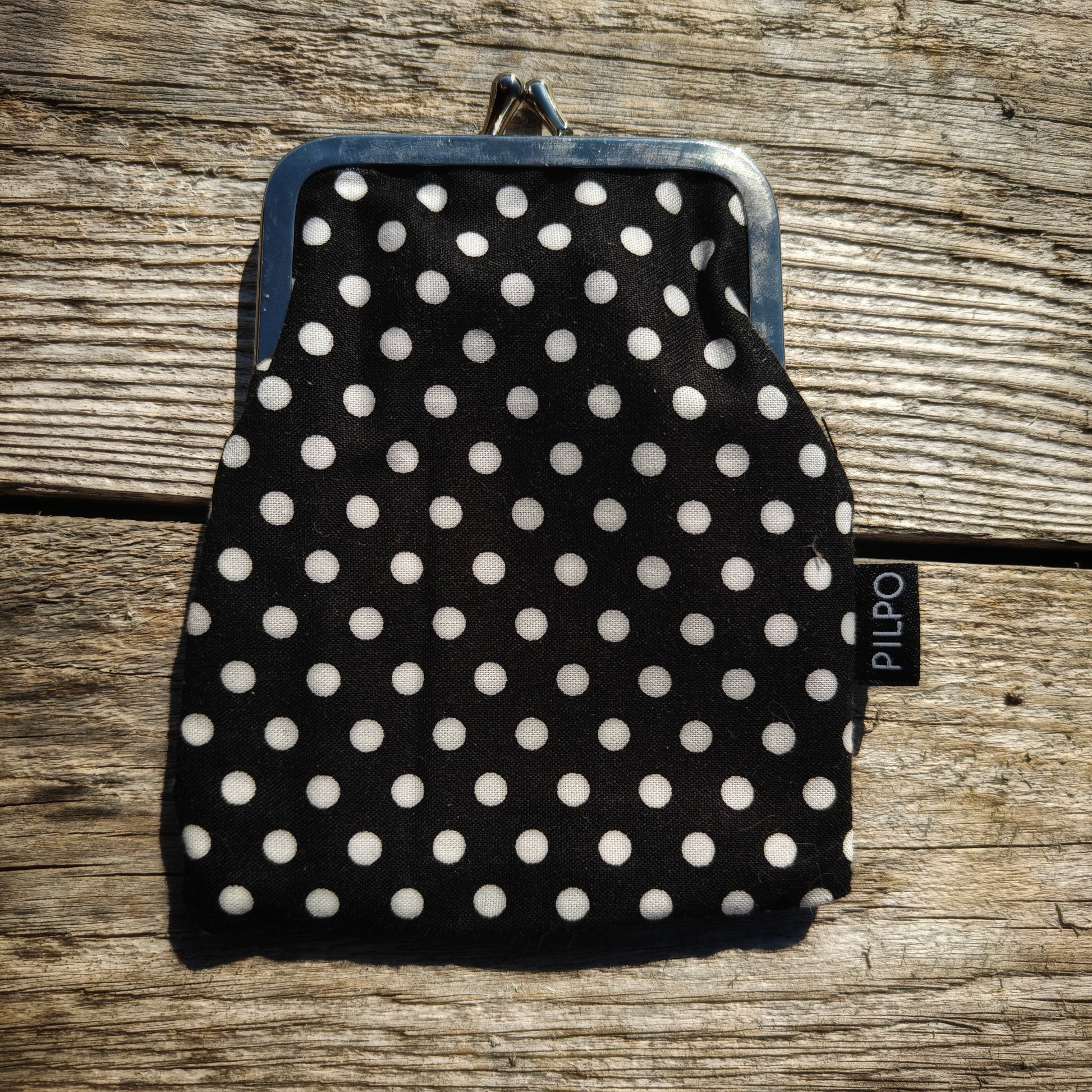 Tähän kukkaroon saat mahtumaan pankkikorttisi ja vaikkapa muutaman kolikon. Kukkaron koko n. 8cm x 11cm.