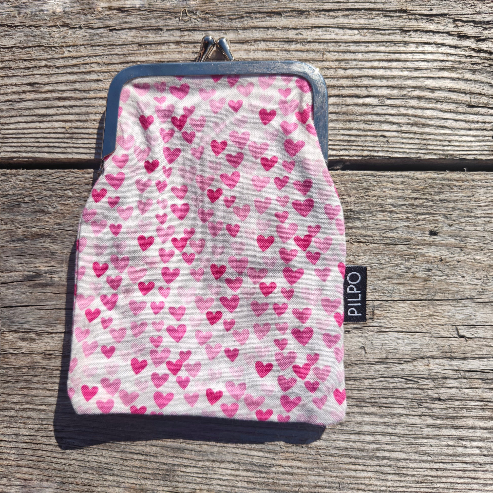 Tähän kukkaroon saat mahtumaan pankkikorttisi ja vaikkapa muutaman kolikon. Kukkaron koko n. 8cm x 11cm.