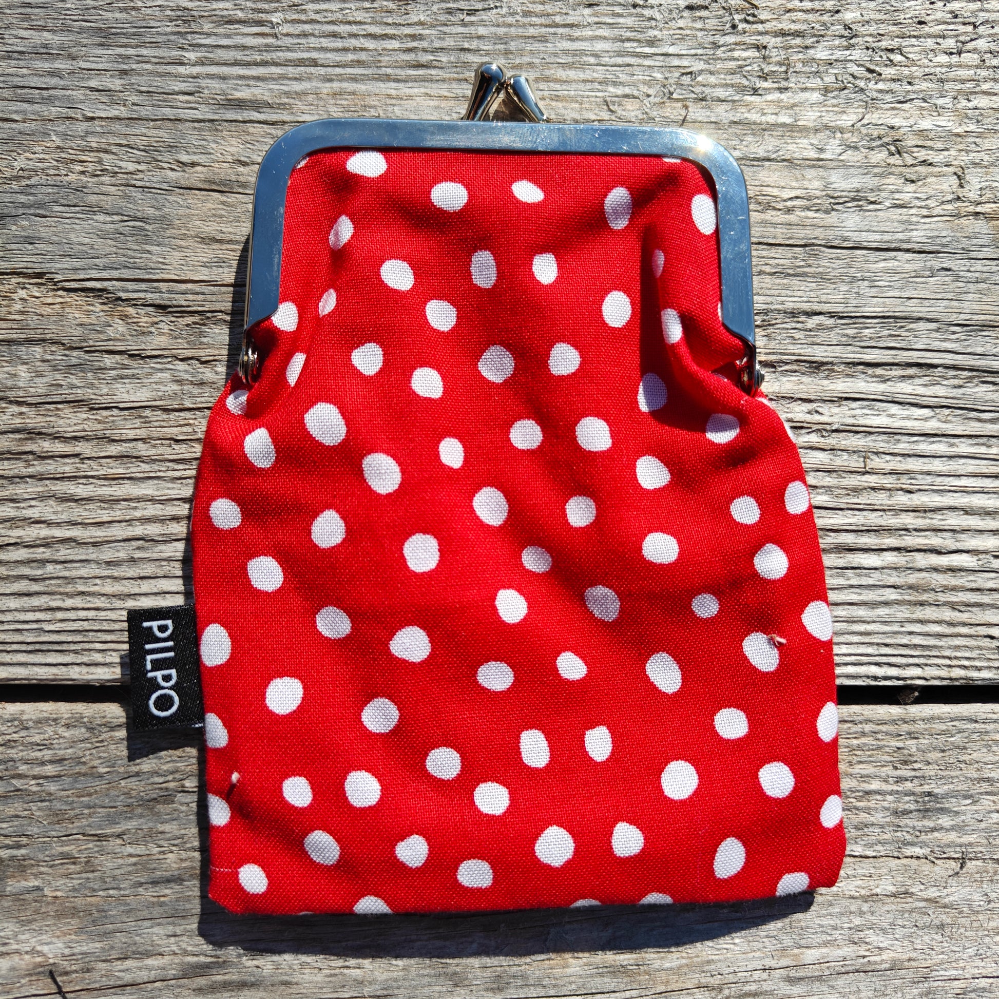 Tähän kukkaroon saat mahtumaan pankkikorttisi ja vaikkapa muutaman kolikon. Kukkaron koko n. 8cm x 11cm.