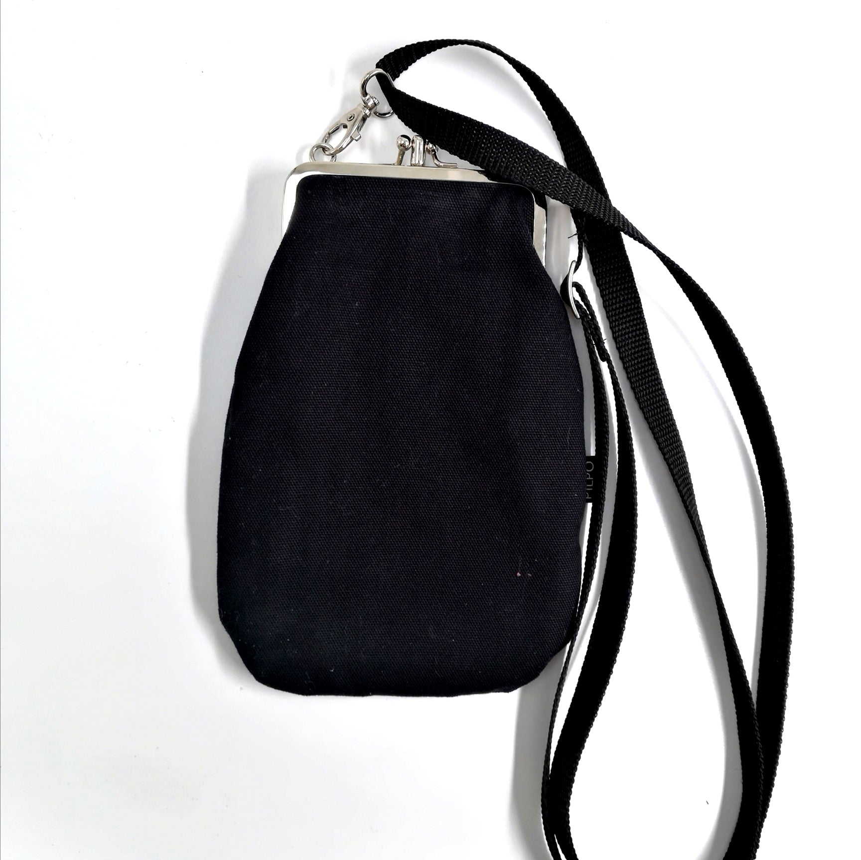 Tupla-Kännykkälaukussa on kaksi erillistä puolta. Saat sen kätevästi olan yli säädettävällä hihnalla jonka paksuus on 1,5cm. Hihnan maksimi pituus n. 155cm. Laukun koko n. 12 cm x 21 cm. Kehyksen leveys 10cm, väri hopea. Sopiva isoille älypuhelinmalleille.