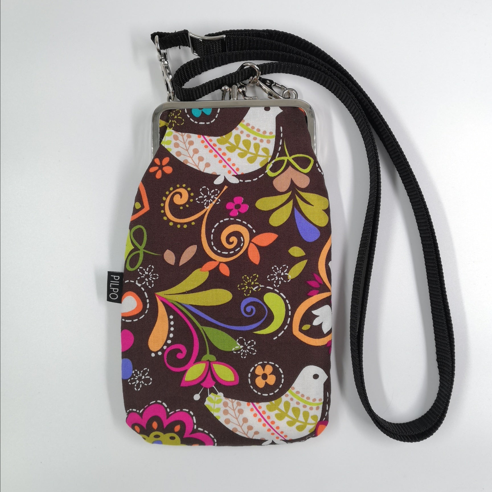 Tupla-Kännykkälaukussa on kaksi erillistä puolta. Saat sen kätevästi olan yli säädettävällä hihnalla jonka paksuus on 1,5cm. Hihnan maksimi pituus n. 155cm. Laukun koko n. 12 cm x 21 cm. Kehyksen leveys 10cm, väri hopea.
