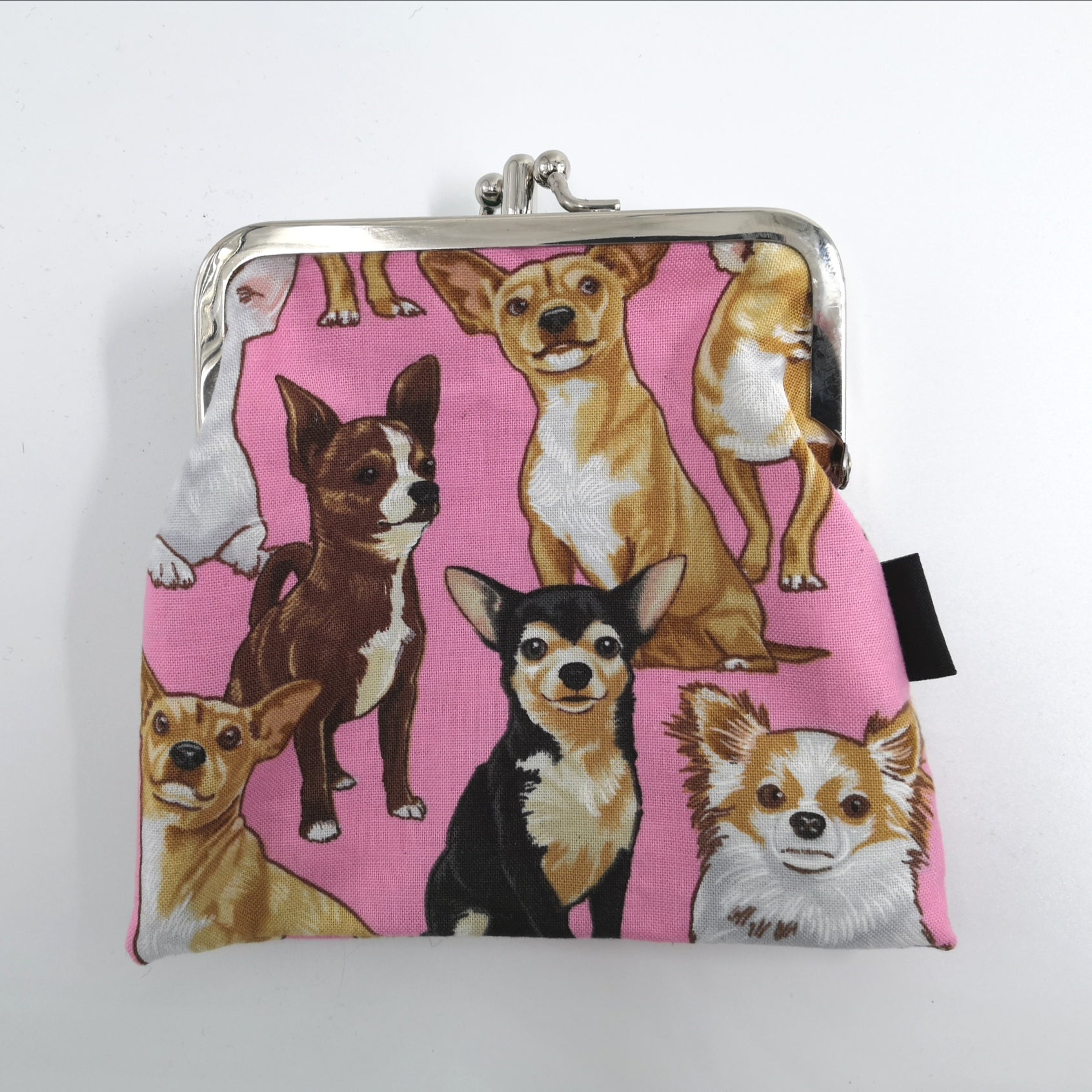 Tuplakukkaro jossa omat puolensa kolikoille ja korteille. Koko n. 10cm x 10cm. Kehyksen väri hopea.