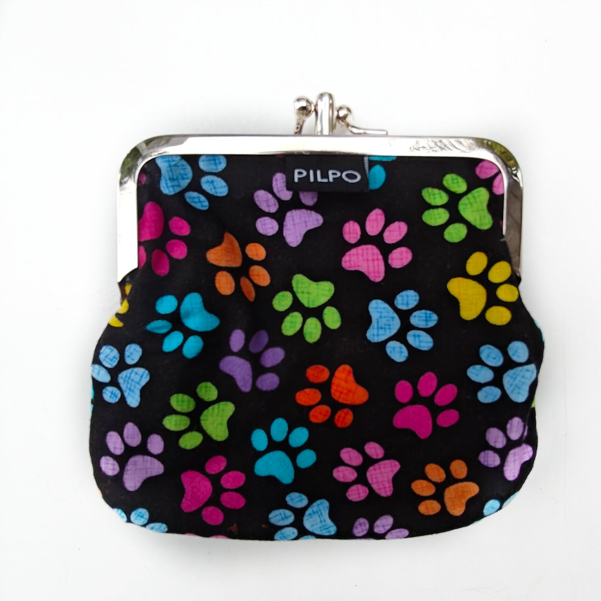 Tuplakukkaro jossa omat puolensa kolikoille ja korteille. Koko n. 10cm x 10cm. Kehyksen väri hopea.