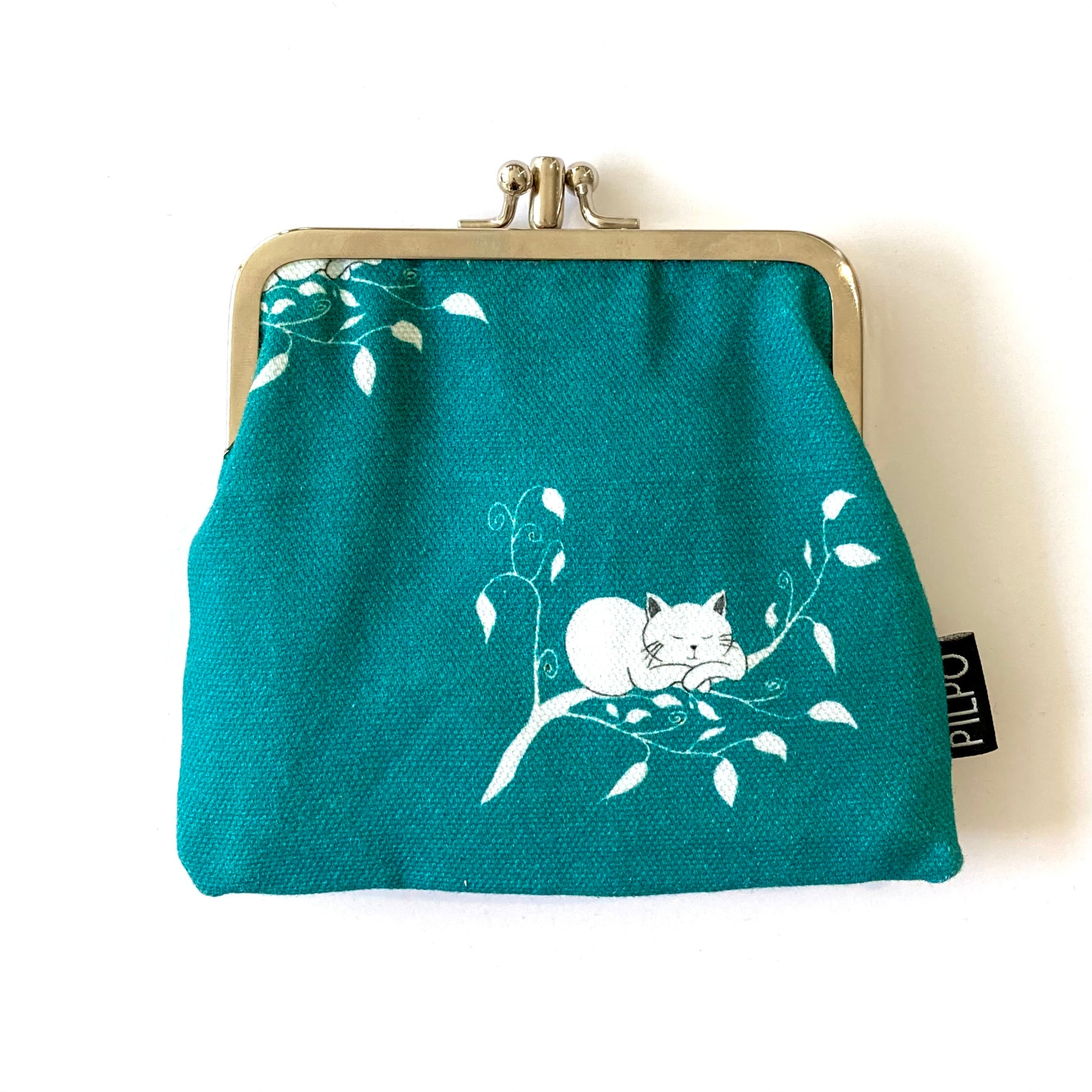 Tuplakukkaro jossa omat puolensa kolikoille ja korteille. Koko n. 10cm x 10cm. Kehyksen väri hopea.