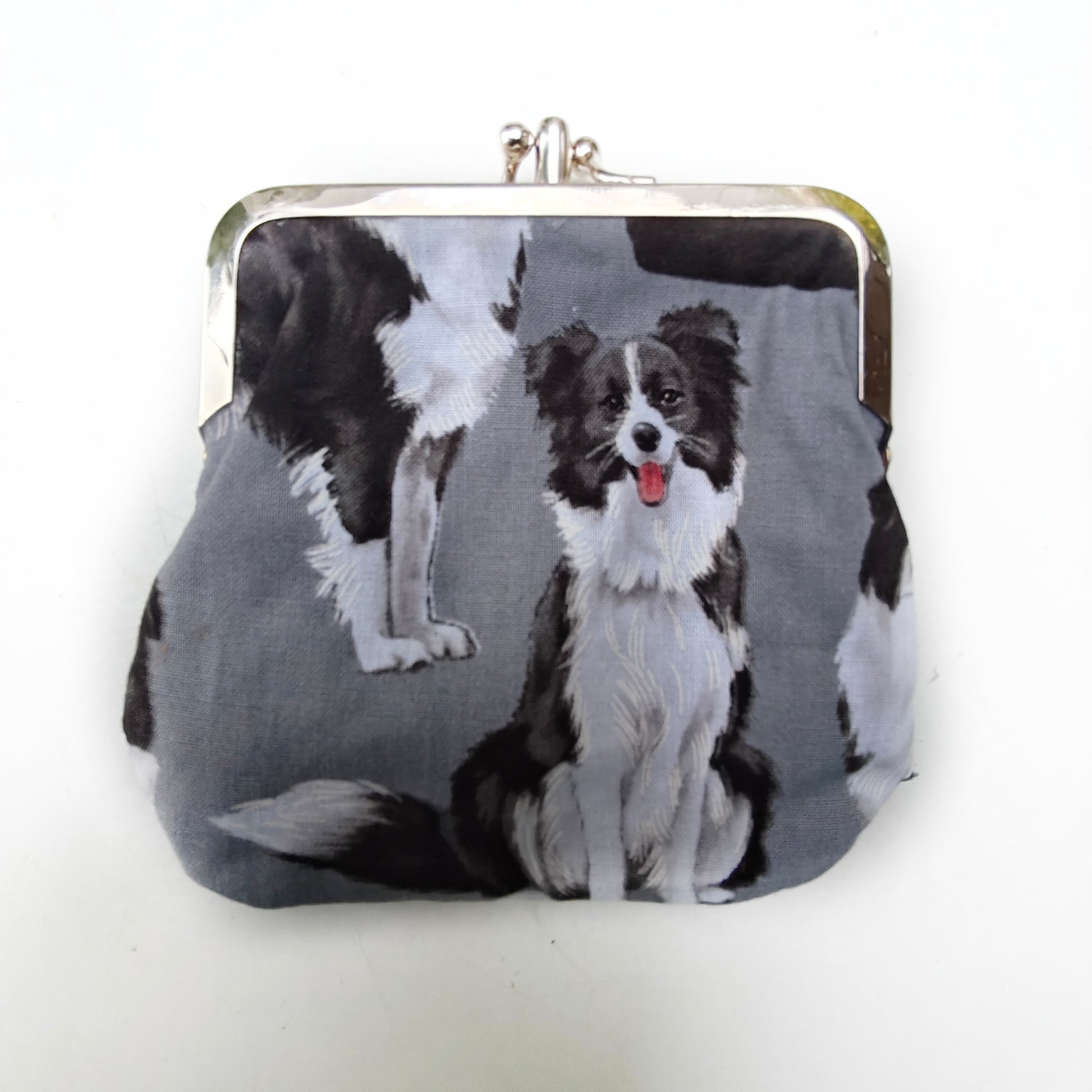 Tuplakukkaro jossa omat puolensa kolikoille ja korteille. Koko n. 10cm x 10cm. Kehyksen väri hopea.