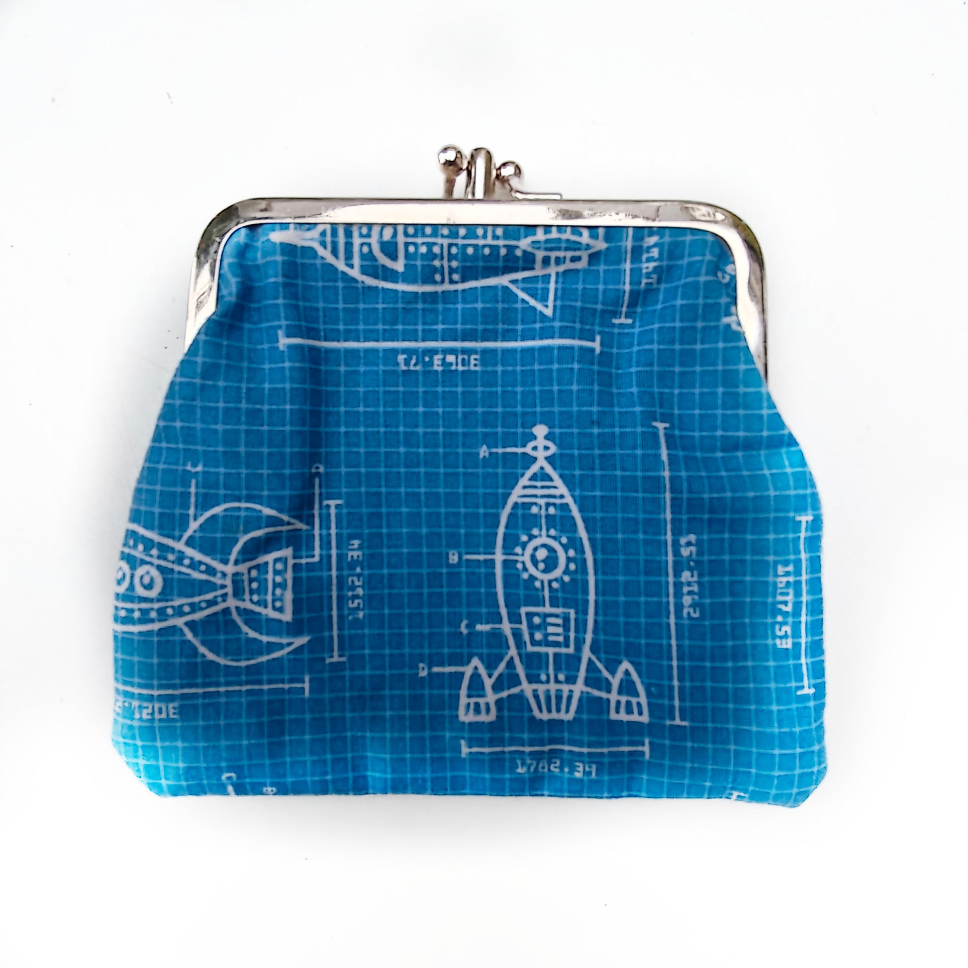 Tuplakukkaro jossa omat puolensa kolikoille ja korteille. Koko n. 10cm x 10cm. Kehyksen väri hopea.