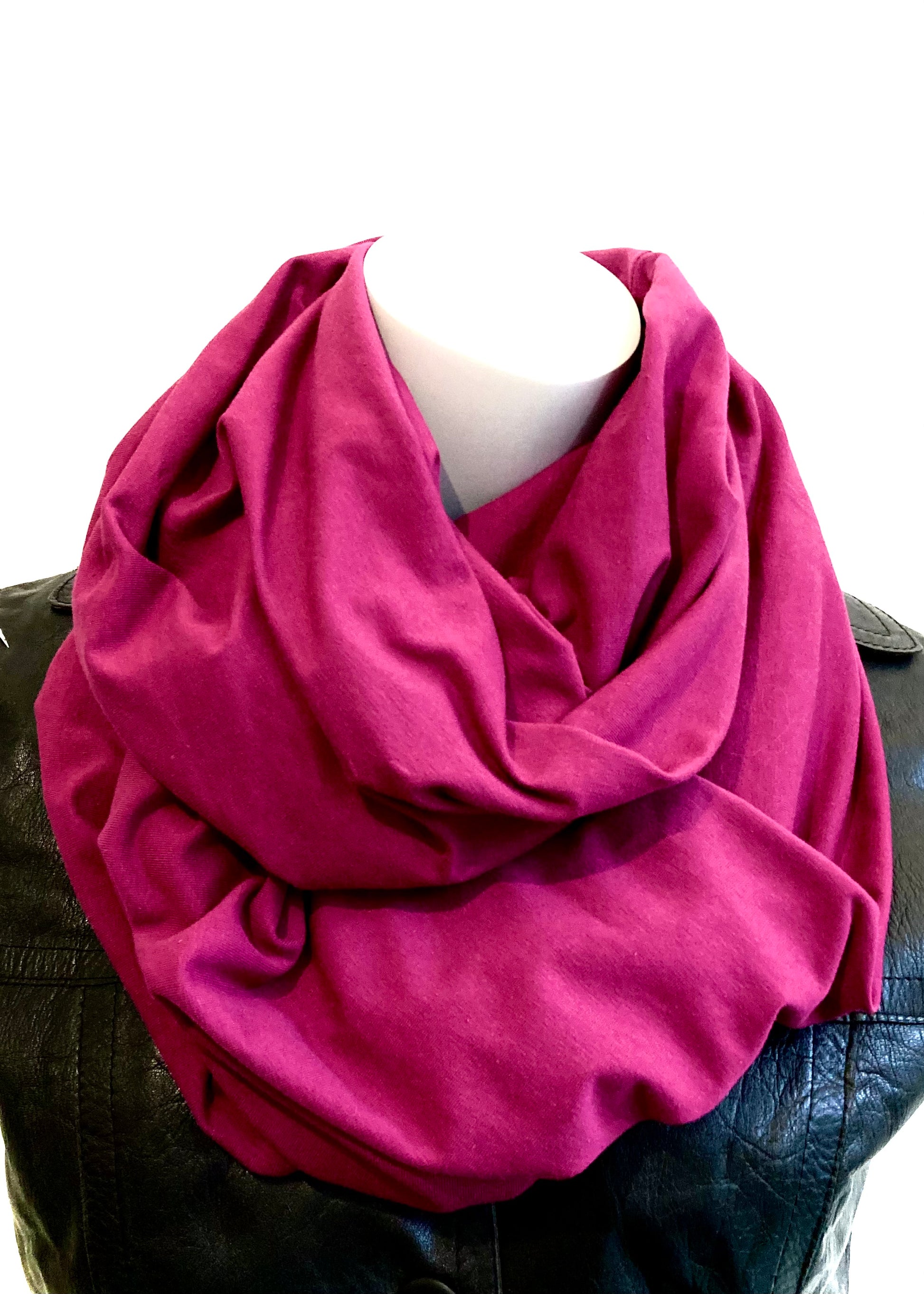 Tuubihuivin koko kaksinkertaisena 75cm x 35cm. Tarkoitettu kaksinkerroin pidettäväksi.