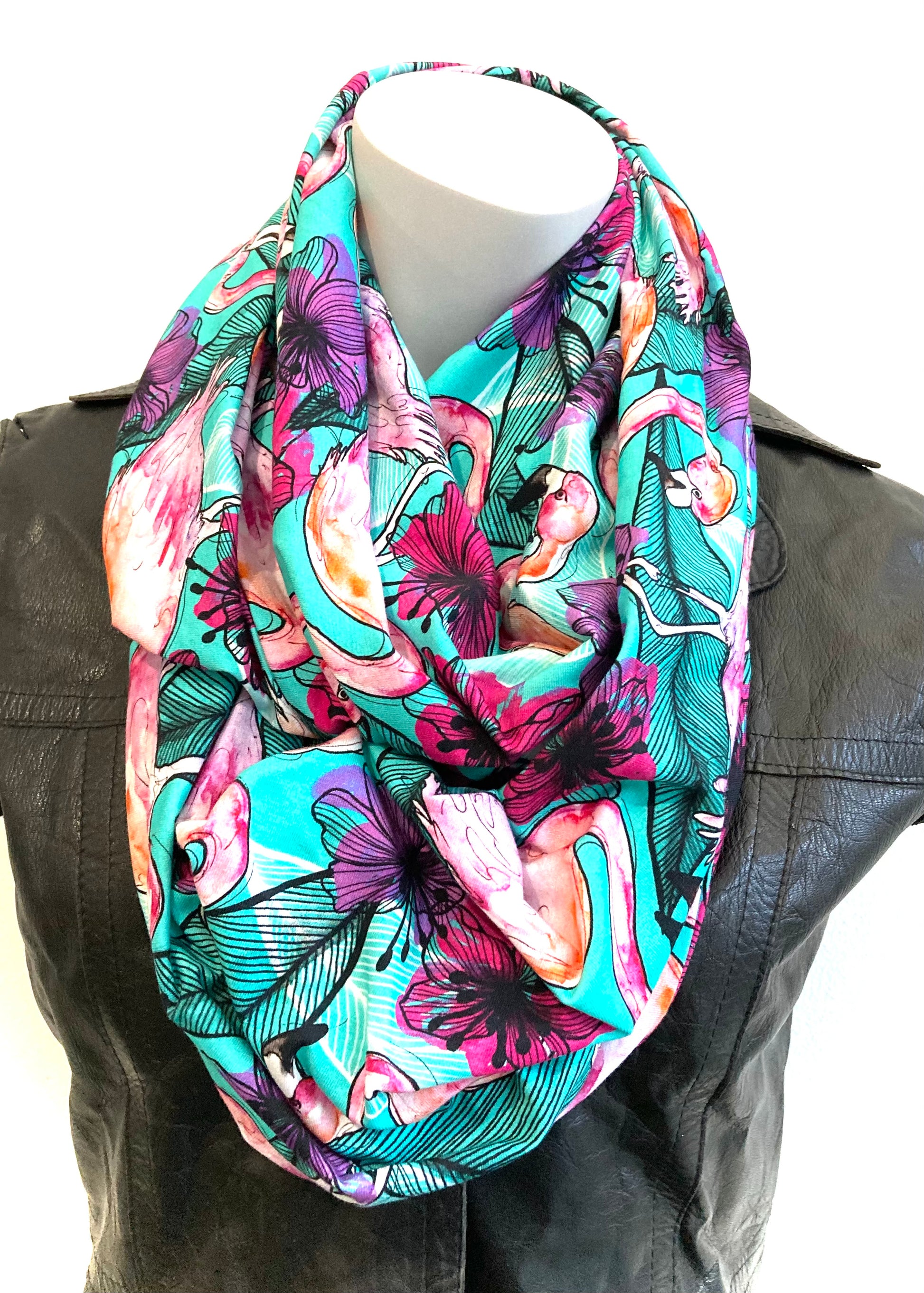Tuubihuivin koko kaksinkertaisena 75cm x 35cm. Tarkoitettu kaksinkerroin pidettäväksi.