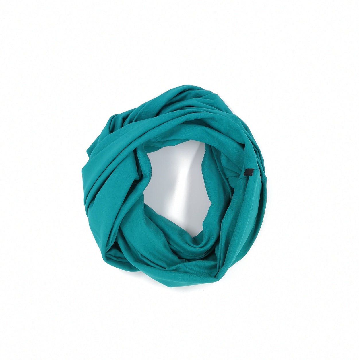 Tuubihuivin koko kaksinkertaisena 75cm x 35cm. Tarkoitettu kaksinkerroin pidettäväksi.