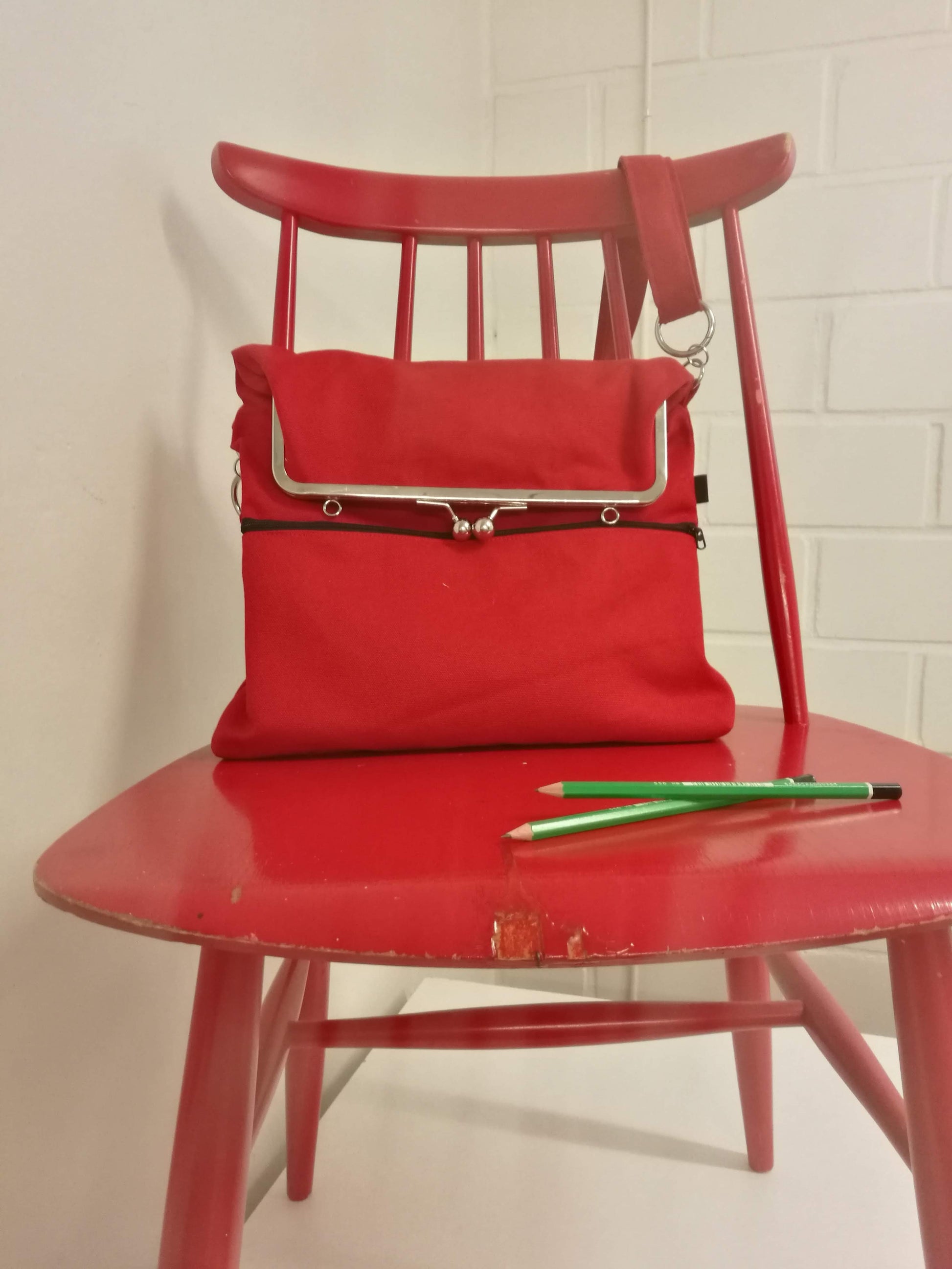 XL-Taittolaukussa on sisällä kolme taskua ja avainnauha. Kaksi taskuista on avonaisia ja yksi vetoketjullinen. Laukun ulkopuolella on myös vetoketjullinen tasku. Hihna on säädettävä ja tukeva, leveydeltään 2cm ja pituudelta n.160cm. Hihnan väri musta. Laukun materiaali paksu ja napakka markiisikangas 100% puuvillaa. Vuorin väri hiekka/beige. Laukun mitat ovat taitettuna n. 28 cm x 36 cm. Pohja n. 6cm.